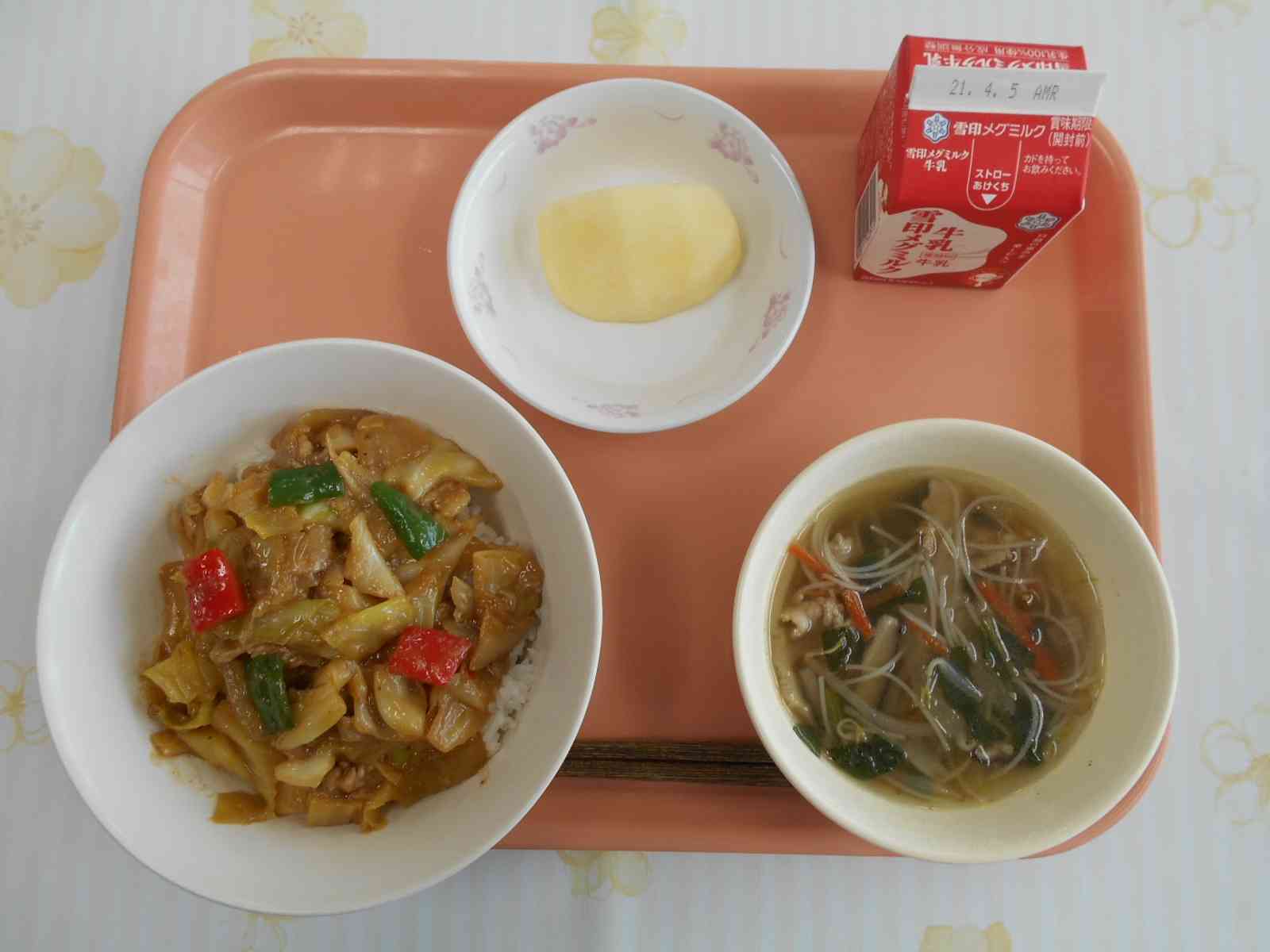 ○牛乳 ○回鍋肉(ホイコーロー)丼 〇ビーフンスープ 〇りんご ☆一口メモ☆ ホイコーローには、隠し味に調味料、トウバンジャンを使っています。中華料理によく使われる調味料に、トウバンジャン、コチュジャン、テンメンジャンの3つがあります。どの調味料にも「ジャン」という言葉が入っていて、似た名前のように聞こえますが、使用する料理はそれぞれ違います。 トウバンジャン・・・辛みづけの調味料。麻婆豆腐やエビチリを辛くするときに使います。 コチュジャン・・・甘辛い調味料。ビビンバのみそだれにぴったりです。 テンメンジャン・・・コクとあまみの調味料。みそを使う料理にテンメンジャンを加えるとコクが増します。【添付ファイル】