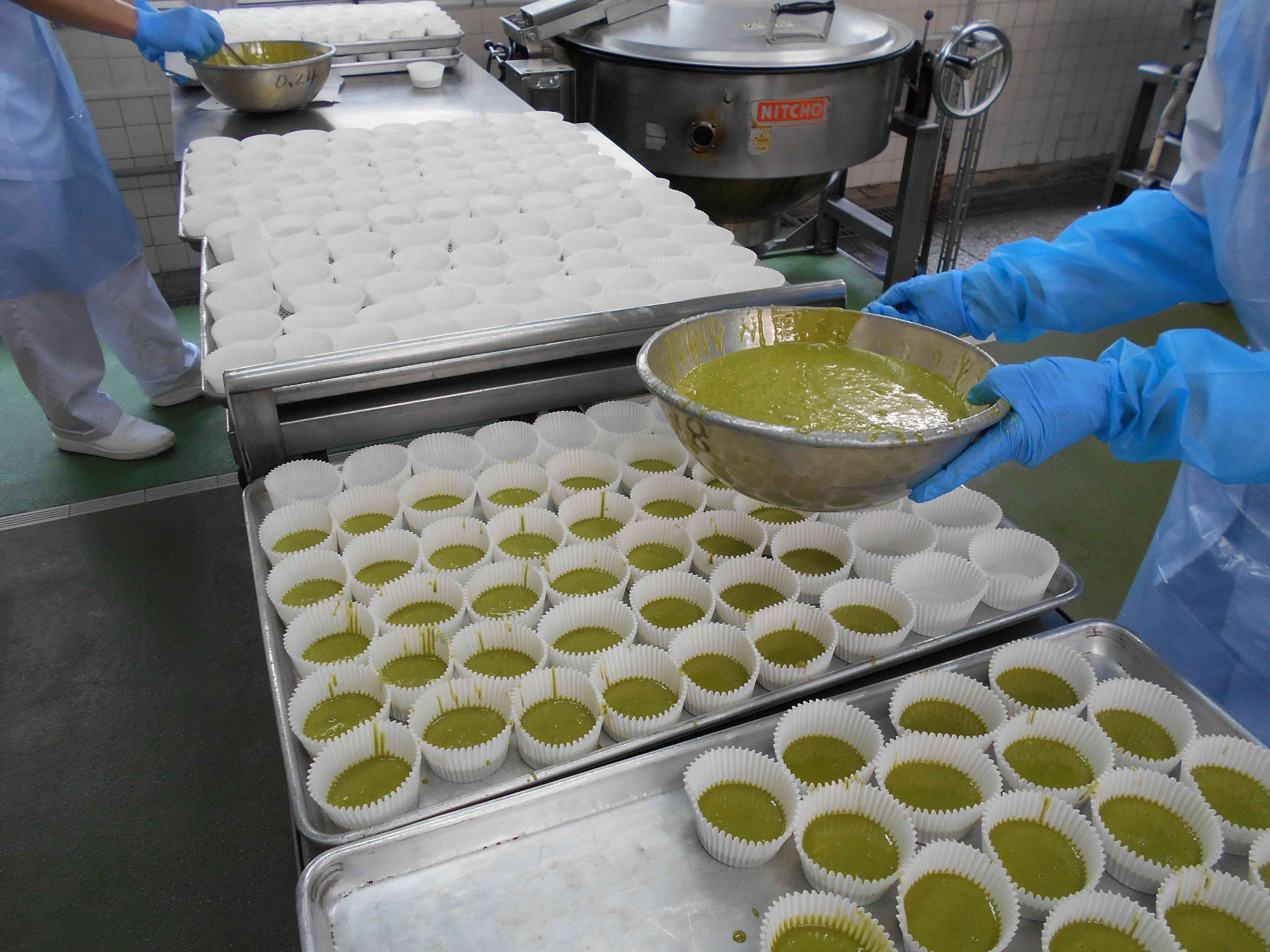 ○牛乳 ○和風スープスパゲッティ 〇チーズ入りサラダ 〇手作り抹茶(まっちゃ)マフィン ☆一口メモ☆ ~夏も近づく八十八夜~ 2月の立春から数えて約88日後を八十八夜といいます。今年の八十八夜は5月1日でした。5月は茶つみの最盛期で、新茶がとれるころです。給食では抹茶を使った手作りマフィンを作ってお茶を味わいます。 写真2枚目 マフィン生地を一人分ずつカップに流し入れてから、焼いて作りました。 生地の材料は、牛乳ではなく豆乳、バターではなく菜種サラダ油を使用しています。乳成分を摂取できない人も、チョコチップをのせなければ、みんなと同じマフィンが食べられるレシピで作りました。【添付ファイル】
