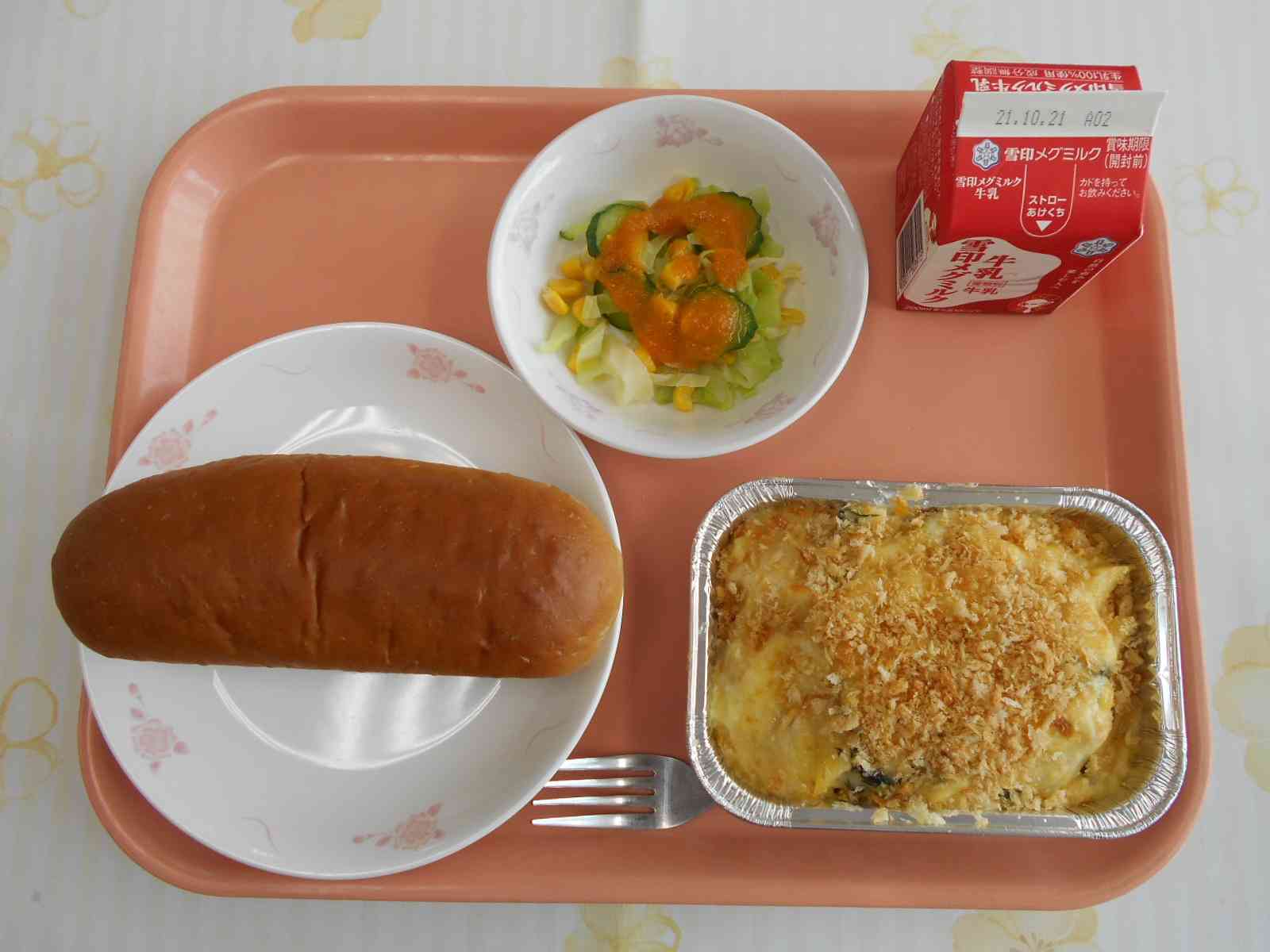 ○牛乳 ○黒砂糖コッペパン 〇マカロニエッググラタン 〇キャロットソースサラダ ☆一口メモ☆ 給食によく入っている彩りがきれいな野菜といえばなんでしょうか。・・・にんじんですね。にんじんは、「ビタミンA」に変化する「βカロテン」を豊富に含む緑黄色野菜です。ビタミンAは、目の健康に欠かせない栄養素で、不足すると暗い場所で物が見えにくくなったり、目が乾燥して疲れ目になりやすくなったりしてしまいます。あさって10月10日は目の愛護デーです。目を大切にするためできることは、ゲームを長時間しない、睡眠をしっかりとるなどがありますが、栄養の面からも目を大切にしていきたいですね。【添付ファイル】