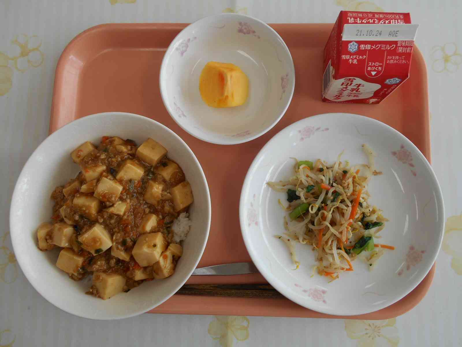 ○牛乳 ○麻婆丼 〇ナムル 〇柿(かき) ☆一口メモ☆ 「柿が赤くなれば医者が青くなる」ということわざがあります。柿が赤くなるのは季候の良い秋です。季候が良いと、体調を崩す人が少なくなり、医者は仕事が減って困るという意味です。 柿を使った慣用句は他にもいろいろあります。 「桃栗三年柿八年」「青柿が熟柿を弔う」「けちん坊の柿の種」 日本では縄文や弥生時代の遺跡から柿の種が見つかっています。柿を使った言葉がいろいろあることからも、柿が日本になじみのある果物だったことが分かりますね。【添付ファイル】