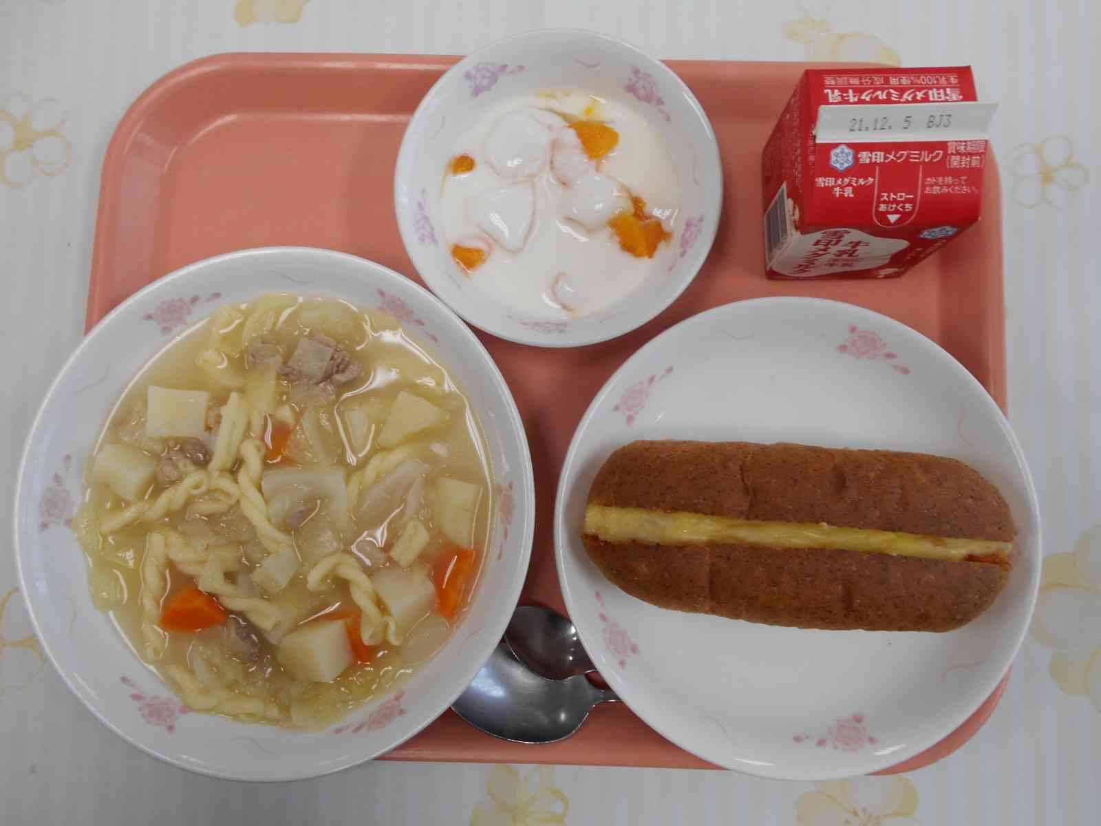 ○牛乳 ○ビーンズチーズドッグ 〇パスタと野菜のスープ 〇フルーツのヨーグルト添え ☆一口メモ☆ 「いただきます」と「ごちそうさま」のあいさつの意味を知っていますか。今日はごちそうさまの話をします。「ちそう(馳走)」は、走り回るという意味です。「私のために、食材を育てたり、集めたり、料理をしたり、走り回ってくれてありがとうございました。」という感謝の気持ちを込めた言葉です。 食べ物やそれにかかわる人々に感謝の気持ちを込めて、「いただきます」「ごちそうさま」が言えるといいですね。【添付ファイル】