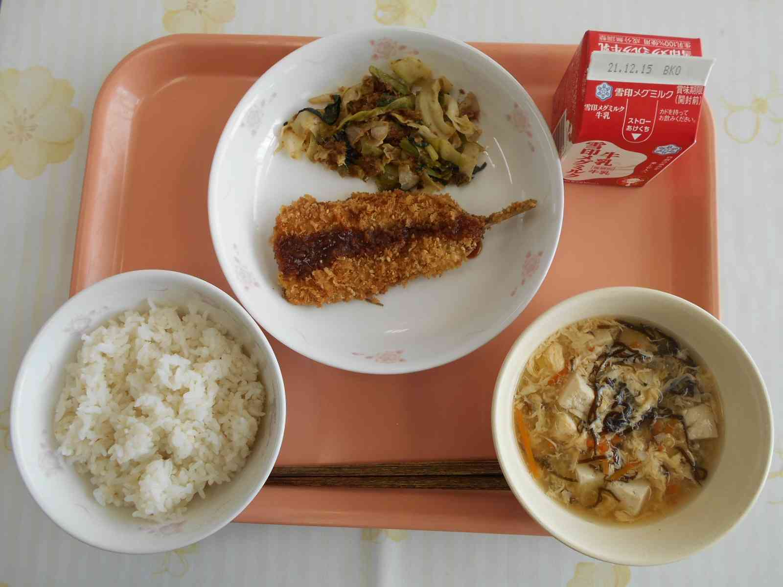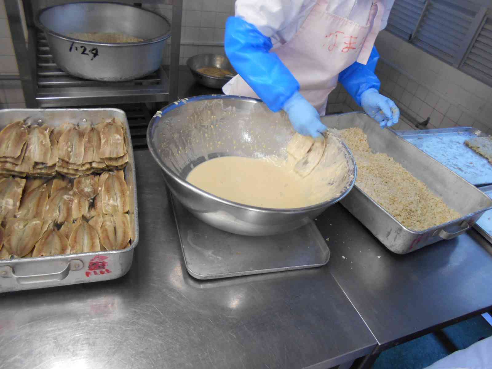 ○牛乳 ○麦ご飯 〇鰯(いわし)の香味(こうみ)フライ 〇小松菜のおかか炒め 〇もずくのかきたま汁 ☆一口メモ☆ 平安時代のある人物は、イワシが好物だったと言われています。それはだれでしょうか。 (1)紫式部(むらさきしきぶ) (2)清少納言(せいしょうなごん) (3)紀貫之(きのつらゆき) ・・・答えは(1)紫式部です。源氏物語の作者、紫式部は、いわしが好物だったという逸話(いつわ)があります。 ※本当は、和泉式部がイワシを好きだったという説もあります。 写真2枚目 イワシの香味フライは、イワシの開きに、青のりと白ごまを混ぜたパン粉をつけて揚げました。 写真は器用な調理員さんが、片手で衣をつけ、もう一方の手でパン粉をつけているところです。 写真3枚目 大量調理での炒め物は、しっかり火を通すことと、野菜の食感を良くすることに気をつけています。 回転釜の火加減を調整しながら、スパテラを素早く力強く動かして作りました。 学校のスケジュールに合わせて、今日から来週水曜日まで、いつもの給食時間より20分早くなっています。 調理の時間や工程をよく検討して、確実に時間に間に合うようにしています。【添付ファイル】
