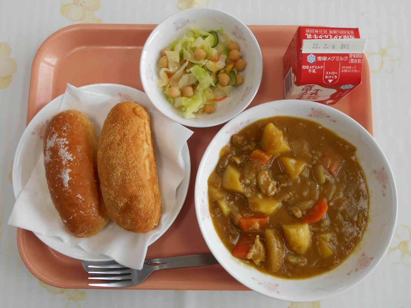 <タイムスリップ献立> ○牛乳 ○揚げパン(きなこ) 〇揚げパン(シュガー・米粉パン) 〇カレーシチュー 〇ひよこ豆入りサラダ ☆一口メモ☆ ☆タイムスリップ献立☆ 1月24日から30日までは、学校給食週間です。今週は、郷土料理や学校給食の歴史を振り返るテーマの献立を提供していきます。 実は、揚げパンは東京都大田区の学校発の料理と言われています。給食で残ったコッペパンを揚げパンにして、欠席の子供に届けたことが始まりだったそうです。(今は、衛生管理上、残った食材の再利用や持ち帰りはできません)【添付ファイル】