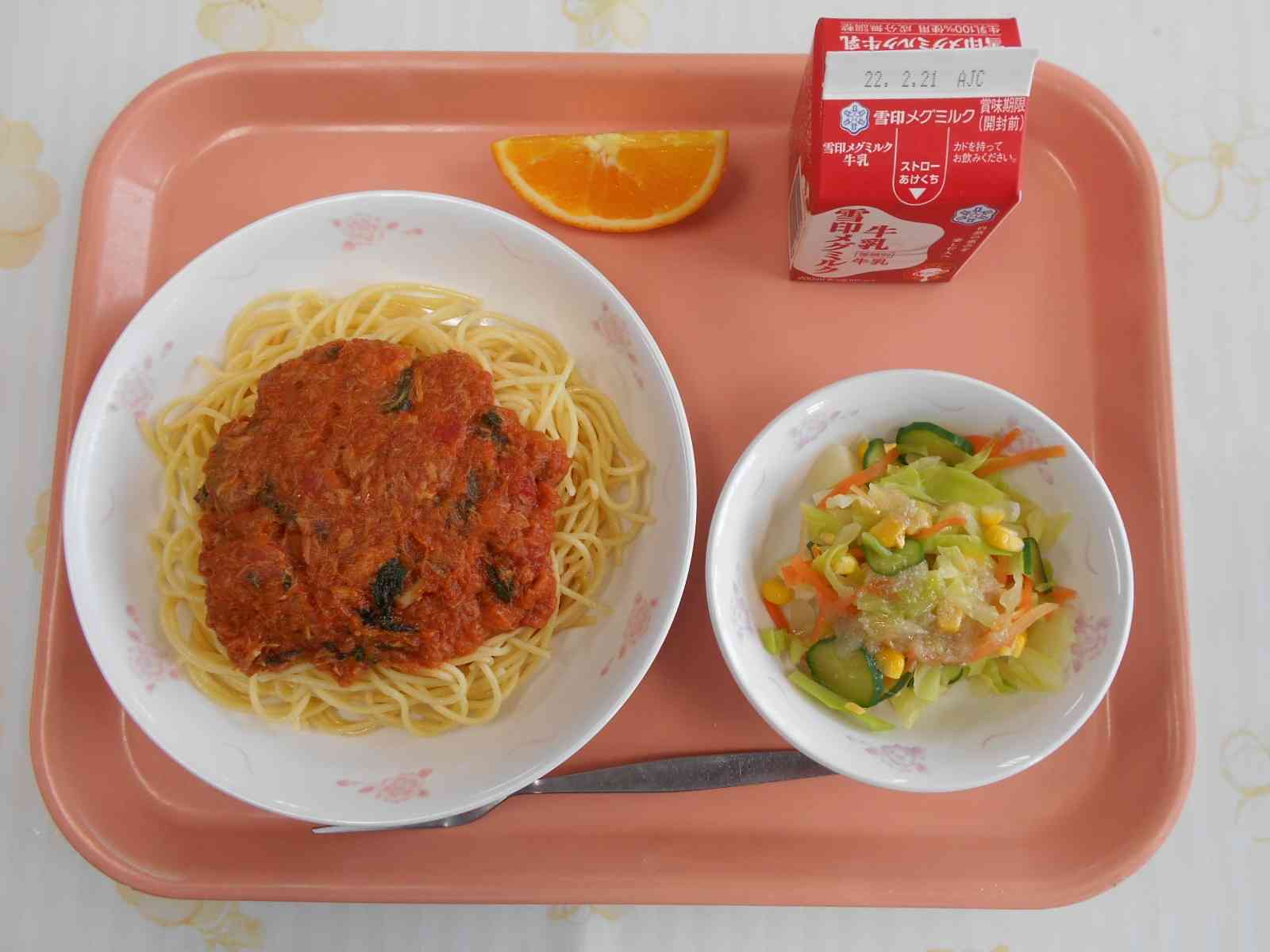 ○牛乳 ○ツナとしめじのスパゲティ 〇じゃが芋入りサラダ 〇ネーブルオレンジ ☆一口メモ☆ ツナは缶づめに入って売っていることが多いですね。缶詰は、今から200年前に誕生した食品の長期保存を可能にしました。ここで、クイズです。缶詰めが誕生してすぐは、缶切りがありませんでした。では、どうやって缶を開けていたでしょうか。 (1)呪文を唱える (2)たたき壊す (3)開くまで待ち続ける ・・・答えは(2)たたき壊す。缶切りのような便利な道具がない時代は、ノミとハンマーでこじ開けたり、銃で打ち抜いたりしていたそうです。【添付ファイル】