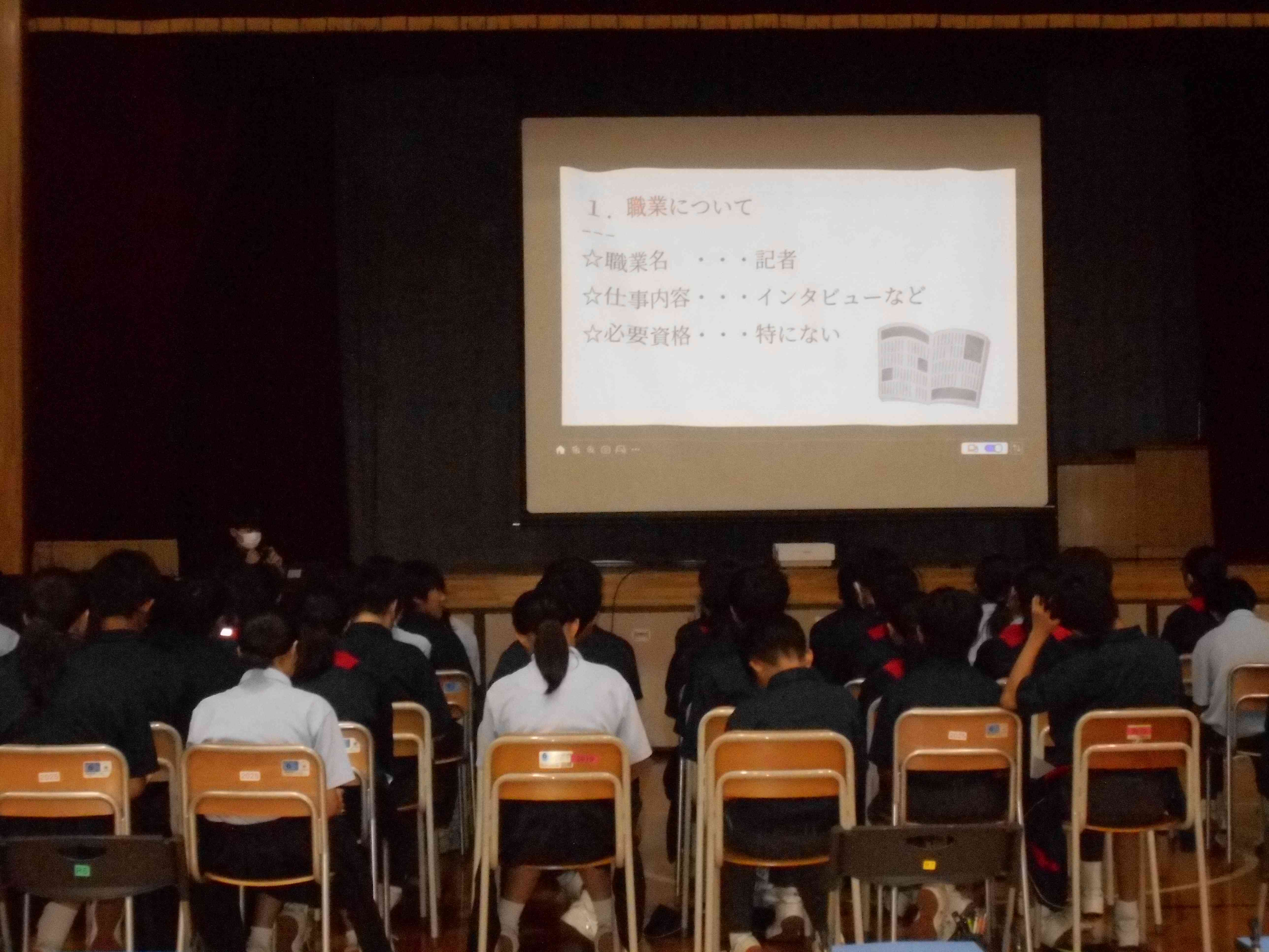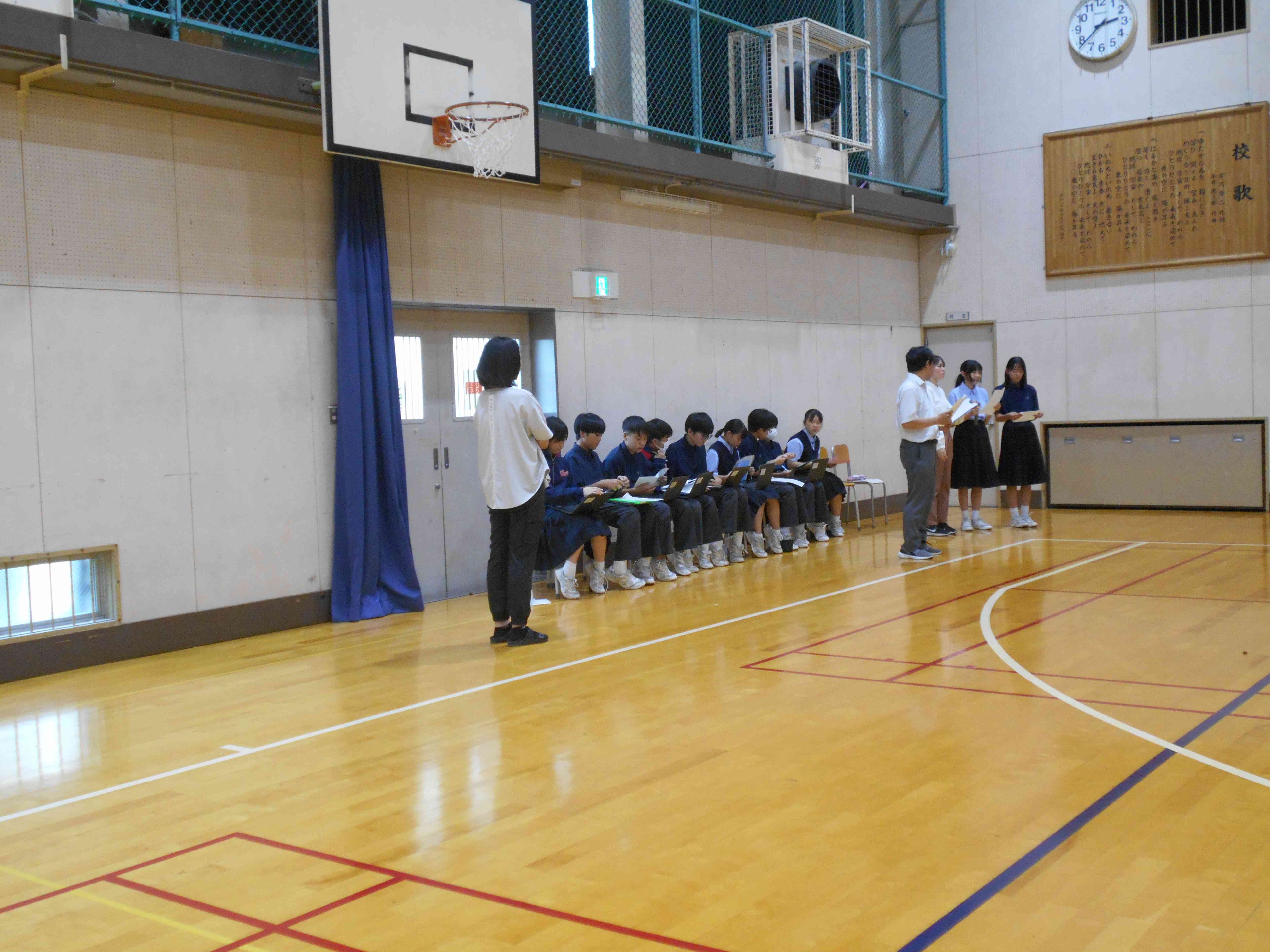 6月17日(火)に実施したTOYO寺子屋について、生徒一人一人がまとめて、各クラスで発表しました。 そして、9月19日(金)6校時、体育館で学年発表がありました。各クラスの代表生徒が発表しました。堂々と伝えることができていました。 副校長 山田陽子