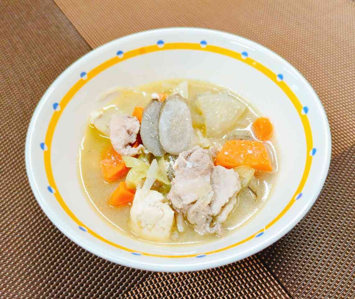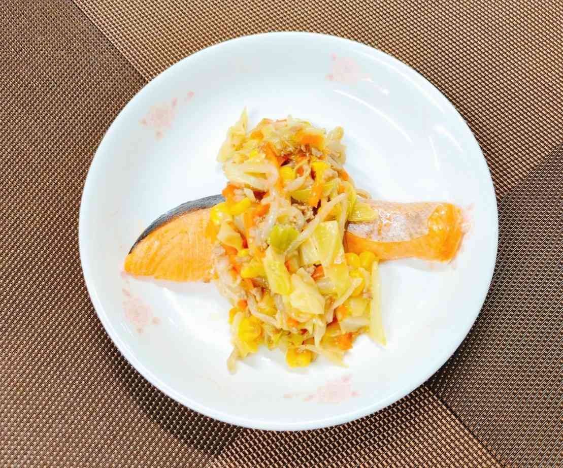 ○牛乳 ○ごはん 〇そぼろふりかけ 〇鮭の野菜あんかけ 〇豚汁 今日は大豆ミートとひき肉を使ったカレー味のふりかけを作りました。 大豆ミートは、大豆の油分を絞り、加熱・加圧して肉のような食感に加工した食品のことです。 高タンパク・低脂質で、食物繊維が豊富な食品です。 また、長期保存が可能なことや、牛や豚を育てるよりも、大豆を育てた方が環境負荷が低いという利点もあります。 今日は旨味を大豆ミートに含ませるため、ひき肉を少量を使い、カレー味にすることで、大豆臭さを感じさせないよう工夫しました。【添付ファイル】