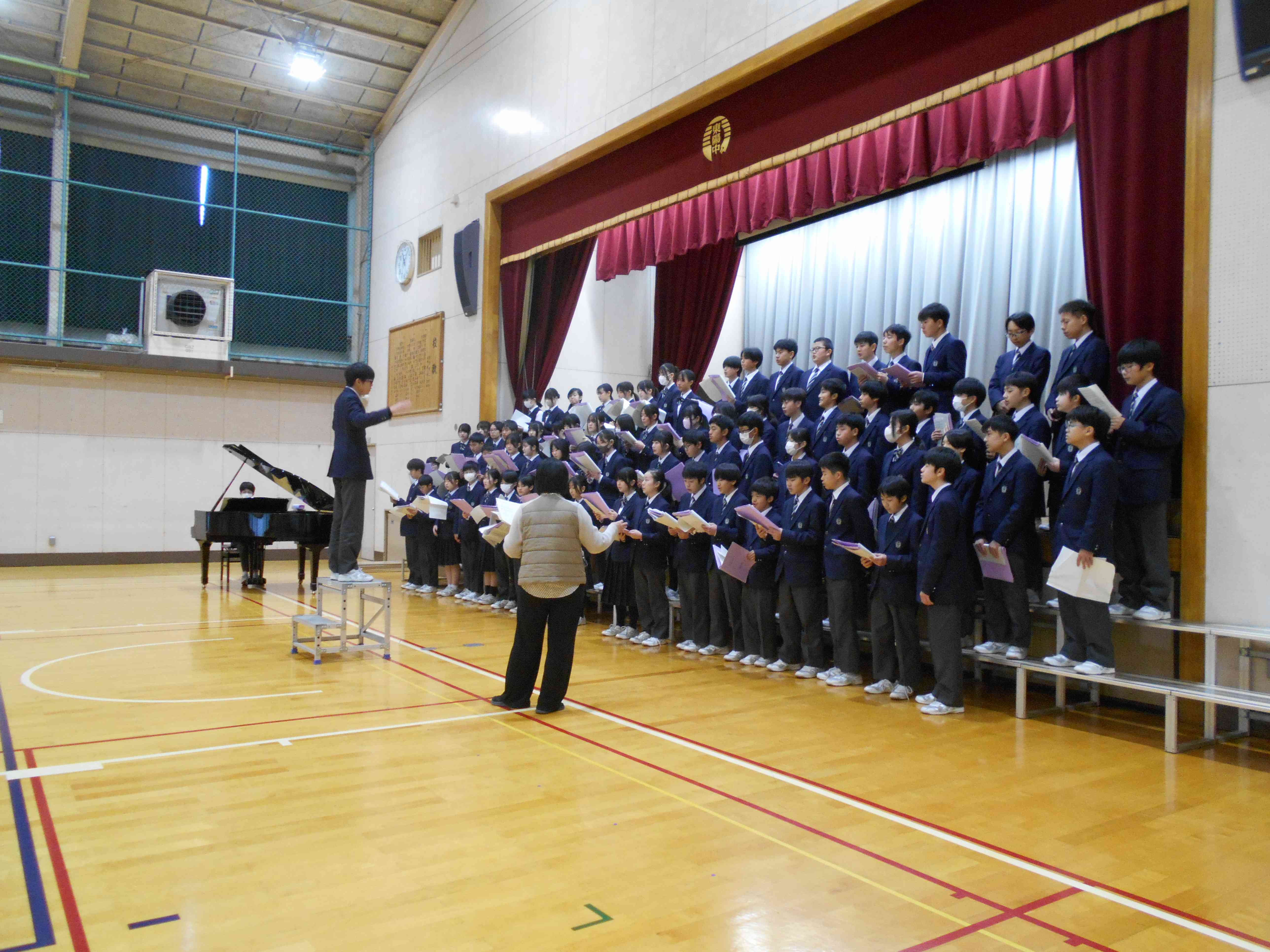 3月5日(木)3校時、1年生は3年生を送る会に向けて、合唱練習を行いました。 指揮者、伴奏者の生徒が中心となり、練習を進めていました。 副校長 山田陽子