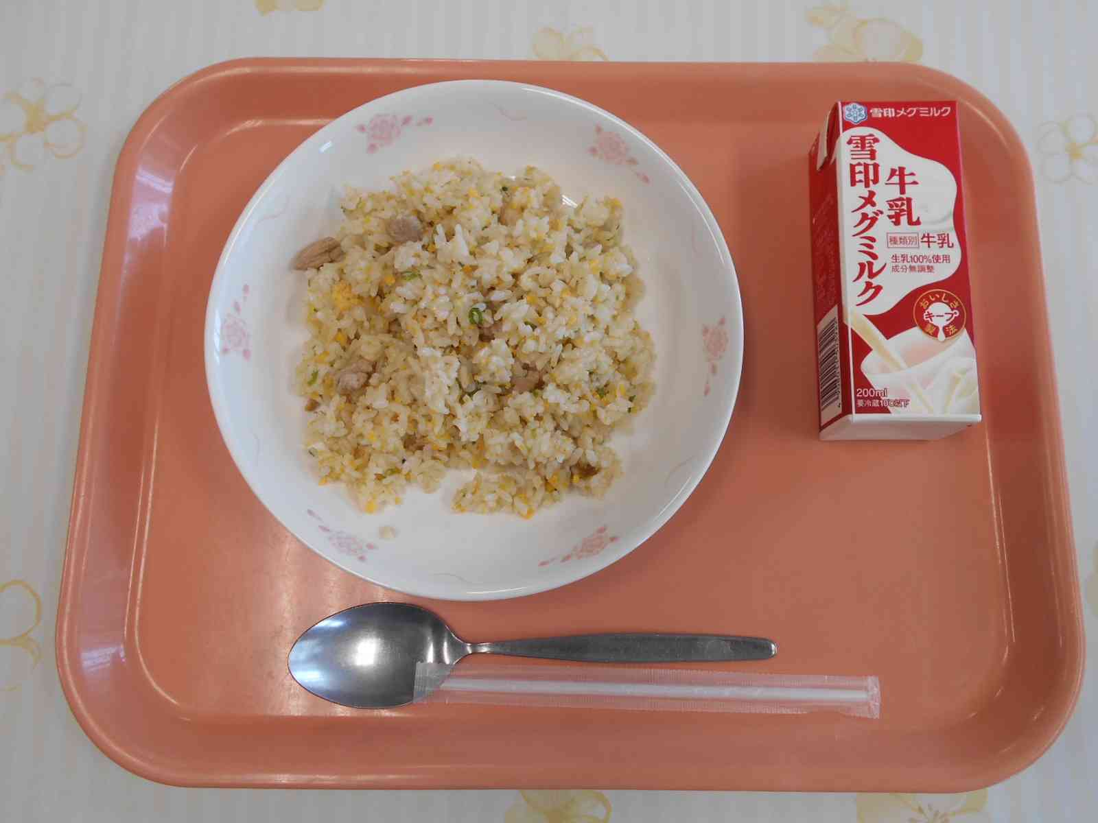 ○牛乳 ○チャーハン ☆今週は感染症対策に特化した「ヒトサラ給食」です。