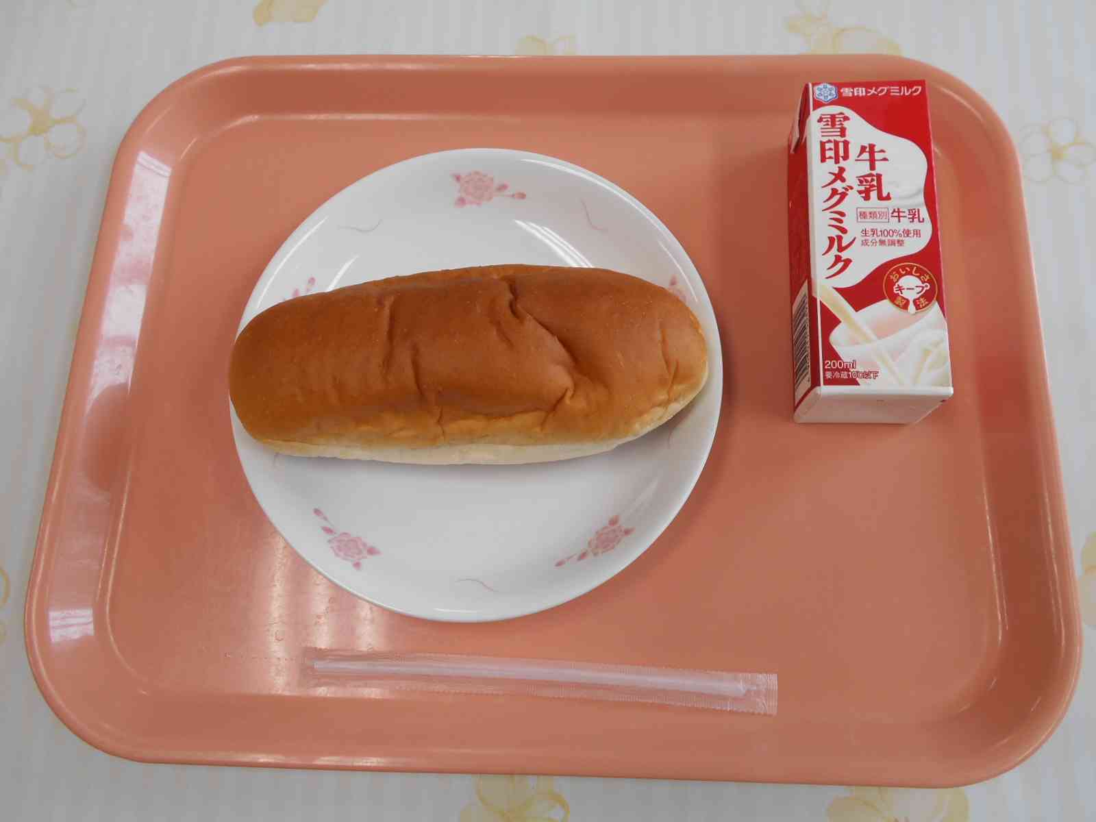 ○牛乳 ○ミルクコッペパン ☆今週は感染症対策に特化した「ヒトサラ給食」です。ミルクコッペパンは1個ずつビニールに入ったものを、教室でトングを使って配膳しました。