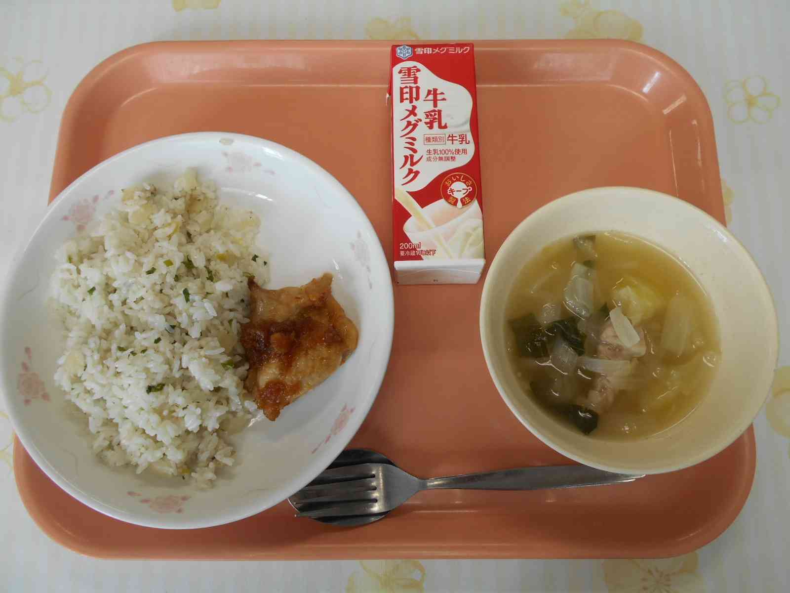 ~フィリピンの味めぐり~ ○牛乳 ○シナガック(ガーリックライス) 〇チキンアドボ(鶏肉の甘酢煮) 〇ニラガ(煮込みスープ) ☆一口メモ☆ フィリピンの味めぐり献立です。スペインや中国の影響を受けた料理が多いフィリピン料理。朝食でよく食べられる「シナガック」というガーリックライスに、鶏肉の甘酢煮「アドボ」を添えていただきます。スープは、フィリピン風のポトフ「ニラガ」です。