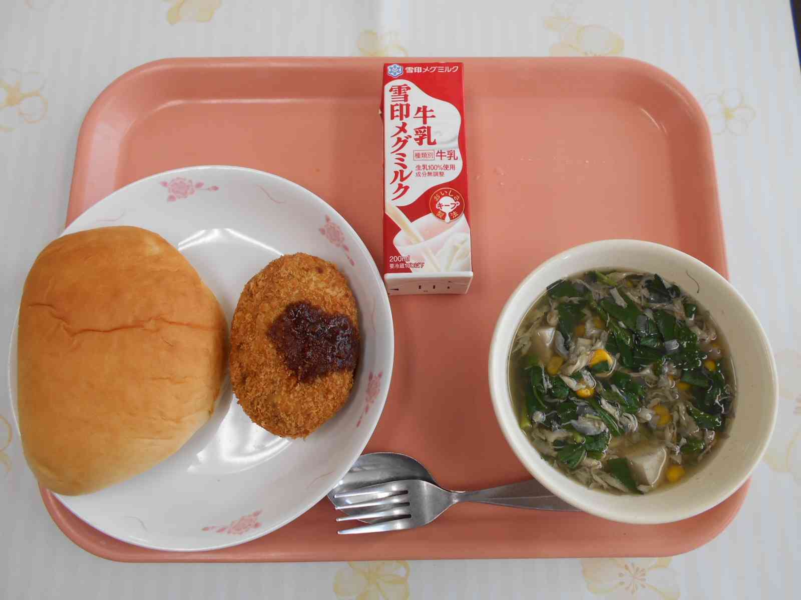 〇ミルクパン 〇ビーンズコロッケ 〇モロヘイヤとコーンの卵スープ ☆一口メモ☆ 8月31日は、語呂合わせで「野菜の日」になっています。給食には夏野菜のモロヘイヤを使いました。モロヘイヤはエジプトからインドのあたりの地域の生まれの野菜と言われています。アラビア語ではモロヘイヤは「王様だけのもの」を意味し、エジプトのクレオパトラが、美しくなるためにモロヘイヤを好んで食べていたという言い伝えもあります。