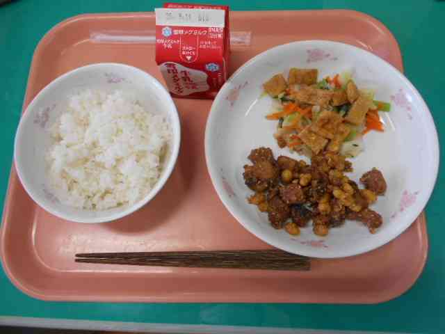 〇牛乳 〇ご飯 〇鰹と大豆のごまみそがらめ 〇カリカリ油揚げのサラダ ☆一口メモ☆ かつおの旬は初夏と秋の頃で、年2回あります。初夏のかつおは、初がつおと呼ばれています。ここでクイズです。秋のかつおはなんと呼ばれているでしょうか。 (1)秋がつお (2)戻りがつお (3)走りがつお ・・・答えは(2)戻りがつおです。春から夏にかけてかつおは黒潮にのって南から北へ北上します。秋になるとUターンして北の方から南に戻ってくるので、戻りがつおと呼ばれています。秋の戻りがつおは、夏の間に栄養をたくわえて、脂がのっているのが特徴です。【添付ファイル】