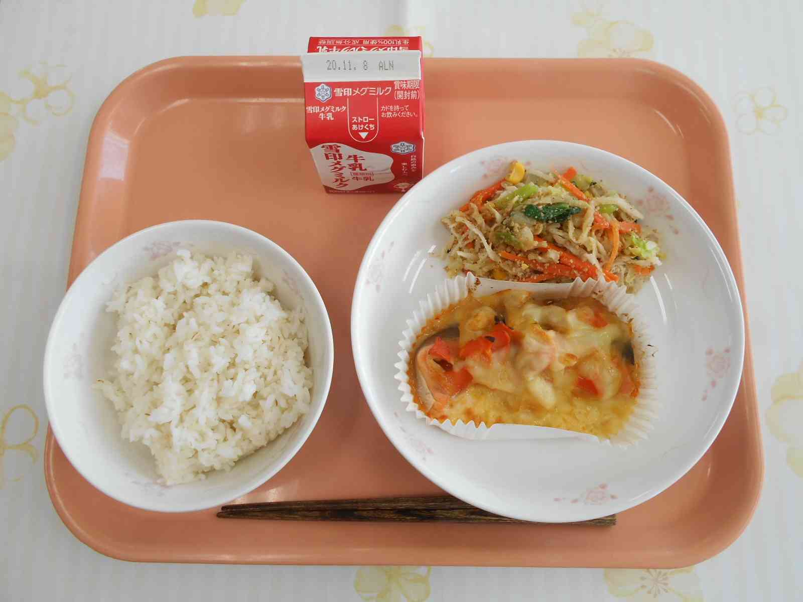 〇牛乳 〇麦ご飯 〇鮭の味噌チーズ焼き 〇ごまだれはりはりサラダ ☆一口メモ☆ はりはりサラダは切り干し大根が入っていて、歯ごたえが良いので、食感も楽しんで食べてみてください。給食の切り干し大根は、宮崎県産です。国産の切り干し大根の9割は、宮崎県で生産されています。大根を収穫した後に、千切りにしてから乾燥させて作ります。そのおかげで、特有の風味と甘みやうまみが生まれています。